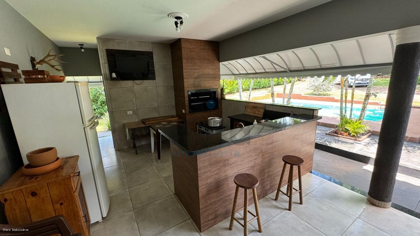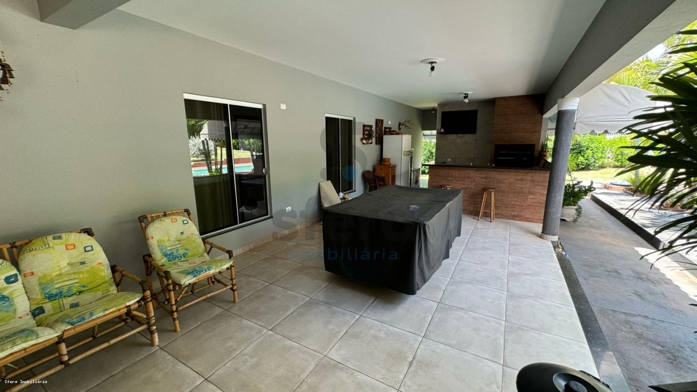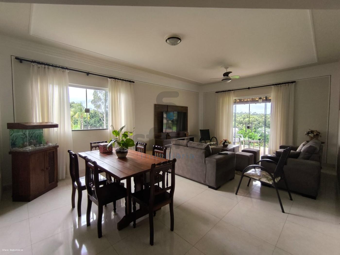 - São 5.000m² de área total e 310m² de área construída; - 03 quartos sendo 01 suíte, todos com ar condicionado; - Escritório; - Banheiro social; - Cozinha planejada conjugada com sala de jantar e sala de estar; - Despensa; - Área de serviço coberta; - Ampla área coberta com espaço gourmet; - Banheiro externo que atende piscina;